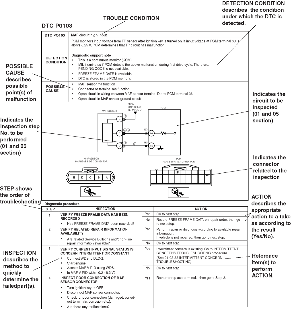 DTC troubleshooting flow (on‐board diagnostic)