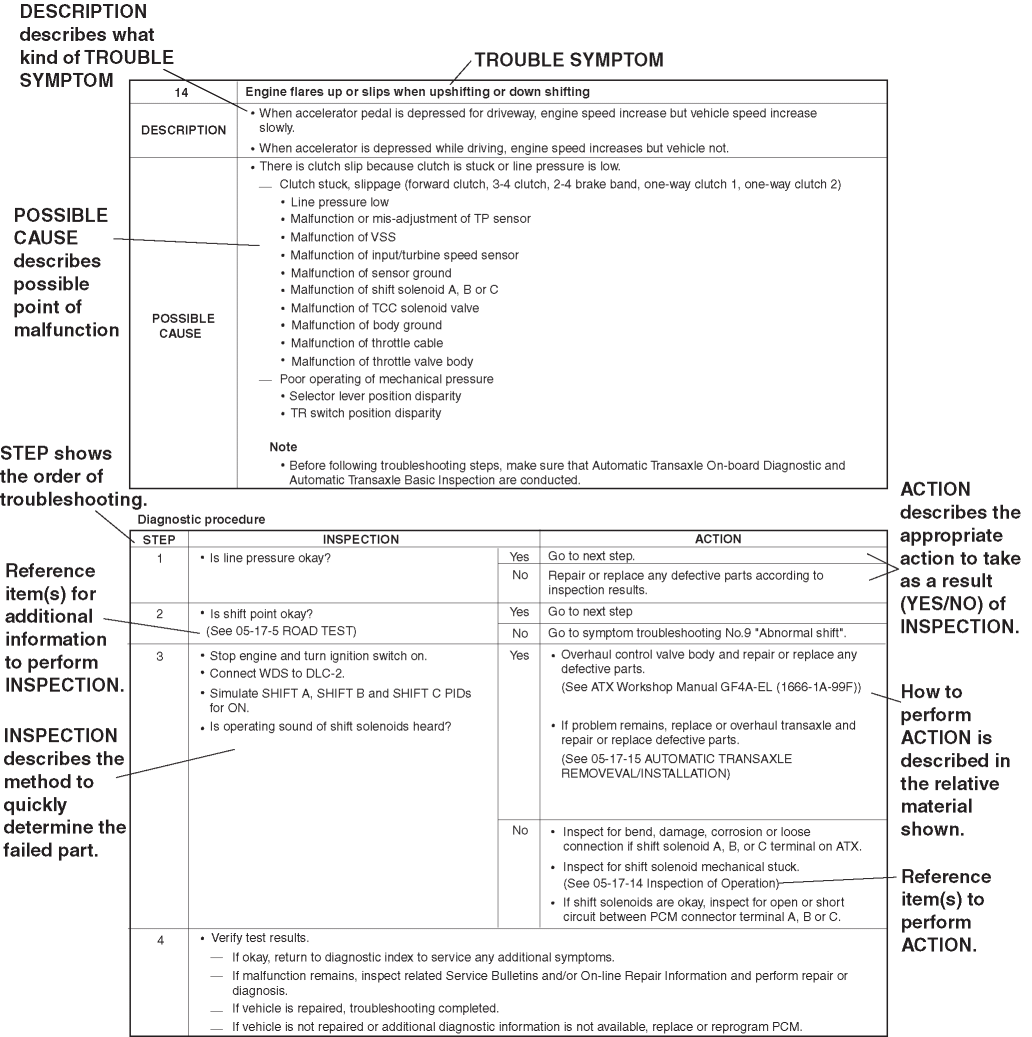 1. Most repair operations begin with an overview illustration. It identifies the components, shows how the parts fit together, and describes visual part inspection. However, only removal/installation procedures that need to be performed methodically have written instructions.