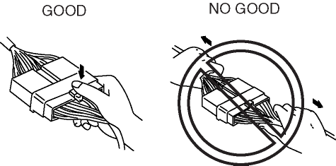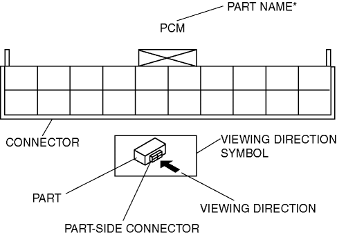 When it is necessary to show the terminal side of vehicle harness-side connectors, such as the following connectors, the viewing direction is from the terminal side.