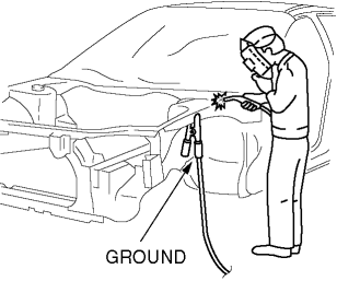 A vehicle has various electrical parts. To protect the parts from excessive current generated when welding, be sure to perform the following procedure.