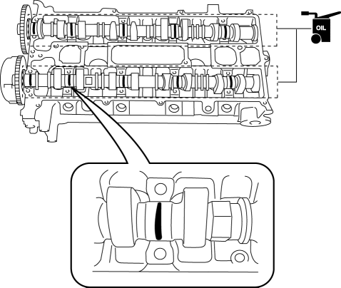 1. Apply the gear oil (SAE No.90 or equivalent) to each journal of the cylinder head as shown in the figure.