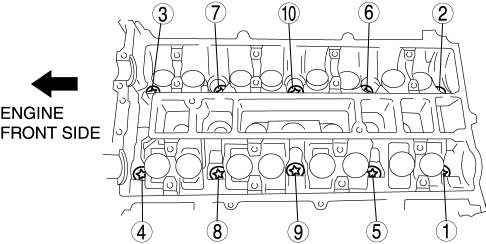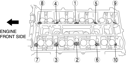 1. Loosen the cylinder head bolts in two or three steps in the order shown.