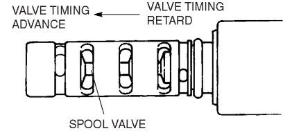 7. Stop applying battery positive voltage and verify that the spool valve returns to the maximum valve timing retard position.