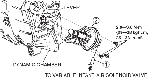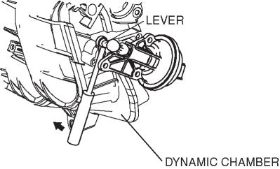 Do not remove the lever, otherwise the variable intake air shutter valve opening angle will deviate. To prevent removal of the lever when removing the variable intake shutter valve actuator, press the lever firmly to the dynamic chamber side by hand.