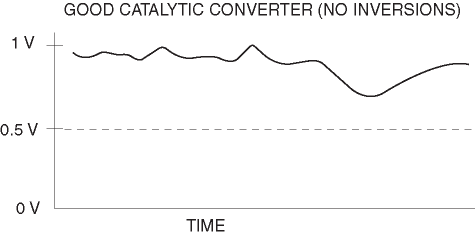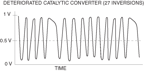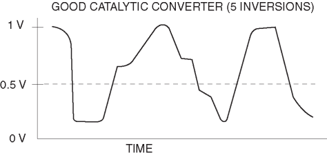 8. Count the number of times (inversions) that the upstream HO2S graph line actually crosses the 0.5 V line.