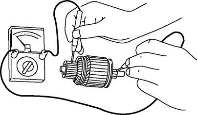 2. Verify that there is no continuity between the commutator and the shaft using a tester.
