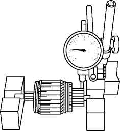 3. Place the armature on V‐blocks, and measure the runout using a dial indicator.