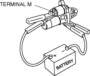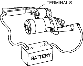 1. Verify that the starter motor pinion is extended while battery positive voltage is connected to terminal S and the starter body is grounded.