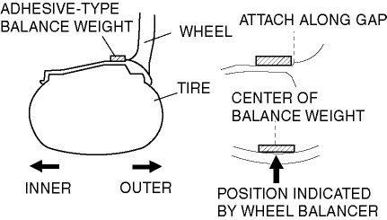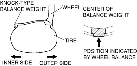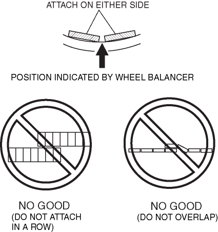 6. If attaching tow balance weights, position them so that each is on either side of the position indicated by the wheel balancer.