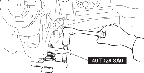 1. Disconnect the front lower arm ball joint from the steering knuckle using the SST.