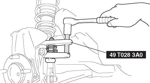 1. Remove the caliper and mounting support from the steering knuckle and suspend it with a cable in a location out of the way.