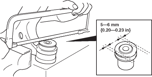 2. Cut off 5—6 mm {0.20—0.23 in} from each side of the knob end of the bushing using a hacksaw.
