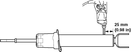 2. Drill a 2—3 mm {0.08—0.12 in} hole at a point 25 mm {0.98 in} from the bottom of the tube, so that the gas can escape.