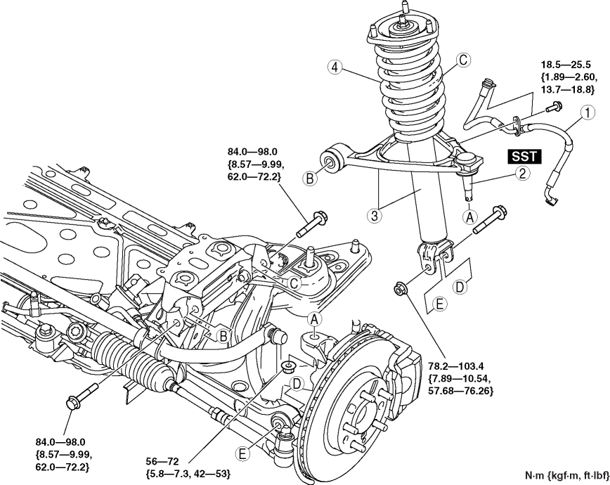 FRONT SHOCK ABSORBER AND COIL SPRING REMOVAL/INSTALLATION