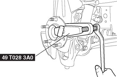 2. Remove the wheel hub bolt using the SST as shown in the figure.