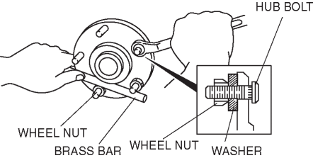 4. Install the wheel hub bolt by placing a proper sized washer on the hub, and tightening the nut as shown in the figure.