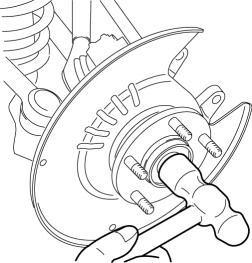 2. Knock the nut with copper hammer lightly and remove the rear drive shaft from the wheel hub.