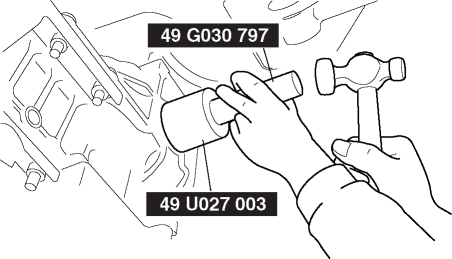 7. Tap in the new oil seal until it reaches the differential carrier using the SSTs.NOTE: