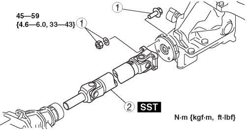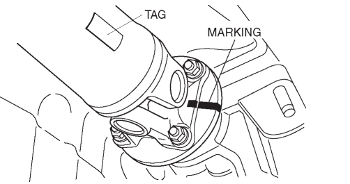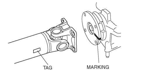 2. When installing a new propeller shaft, align the differential companion flange mark with the tag on the propeller shaft and assemble.