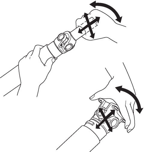 2. Inspect the play and rotation of the joint by turning the universal joint in the direction shown by the arrow.Initial torque (Reference value)
