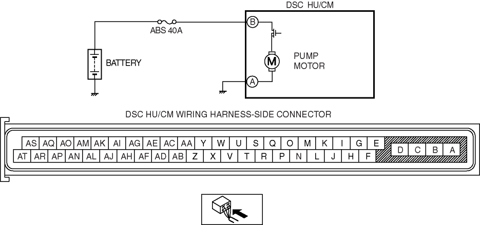 • Open circuit in the wiring harness between the DSC HU/CM terminal A and the body ground