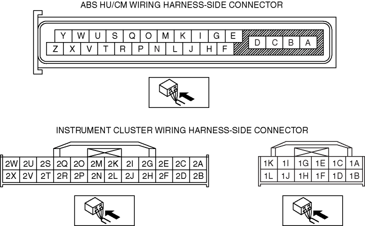 INSPECT WIRING HARNESS BETWEEN ABS HU/CM AND DLC‐2 FOR CONTINUITY AND SHORTS