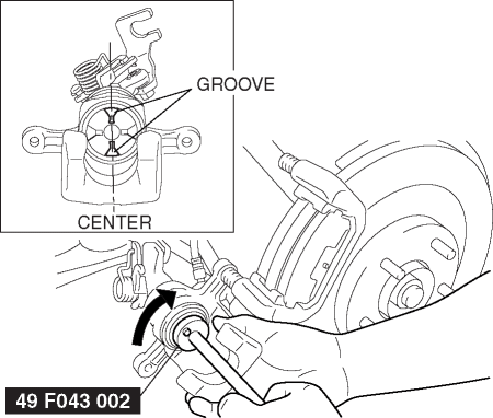 2. Rotate the piston clockwise slowly using the SST and push in the piston completely until the piston grooves are in the position shown in the figure.