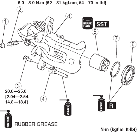1. Rotate the piston counter-clockwise using the SST, remove the piston from the caliper body.