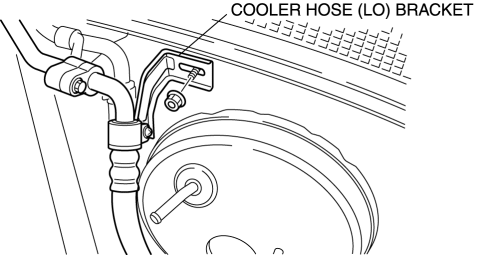 3. Remove the nut shown in the figure, then remove the cooler hose (LO) bracket from the vehicle.