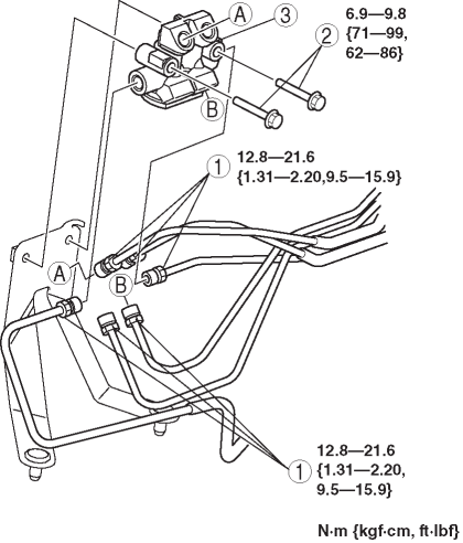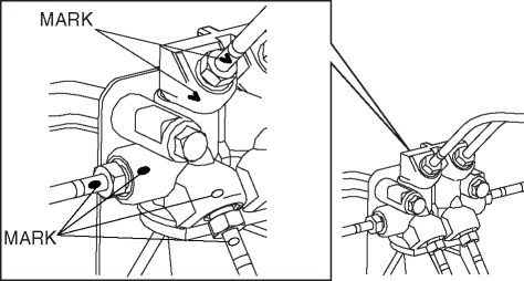 1. Align the marks made before removal and install the brake pipe to the dual proportioning valve referring to the figure.