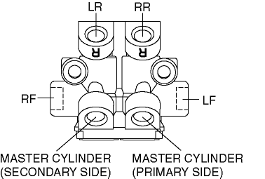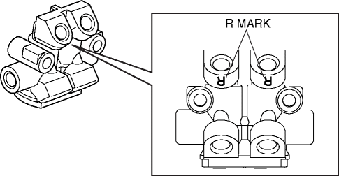 1. Install the dual proportioning valve so that the R marks faces the upper side of the vehicle.