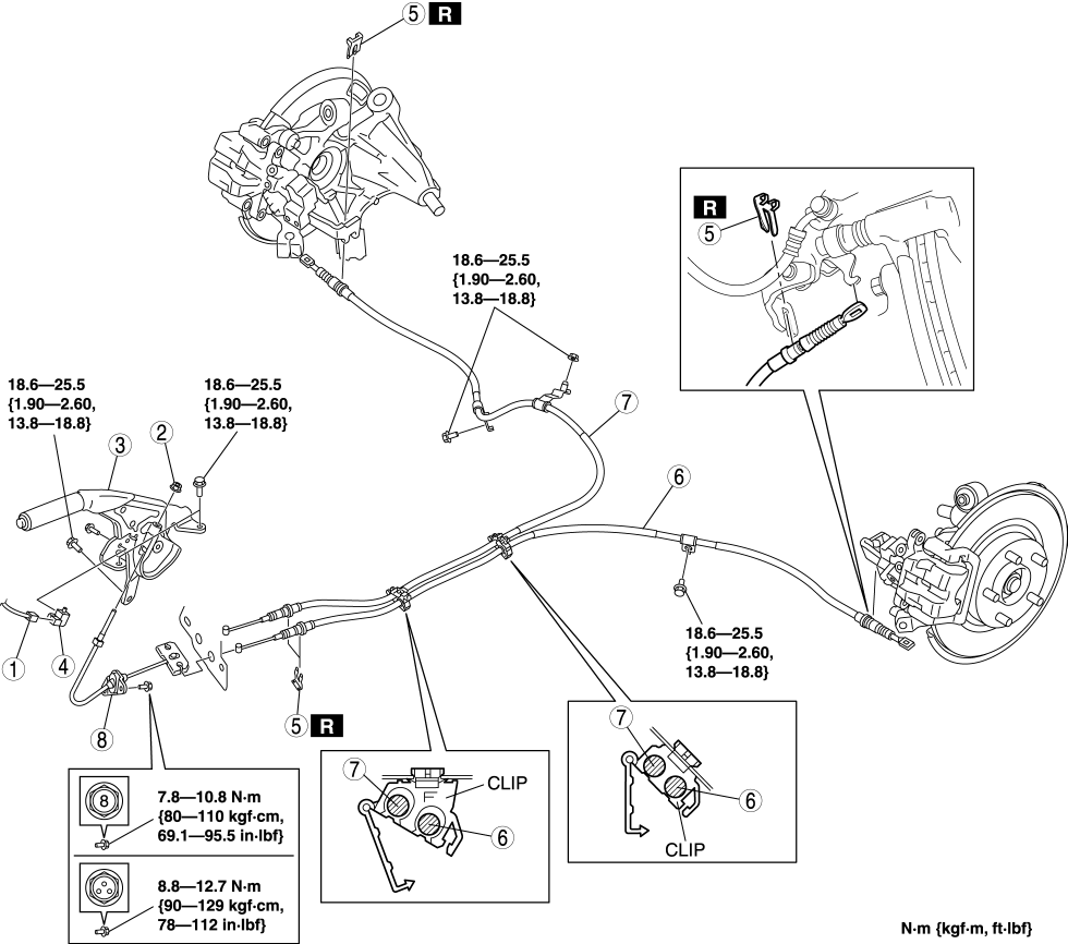 6. After installation, inspect the parking brake stroke and adjust if necessary.