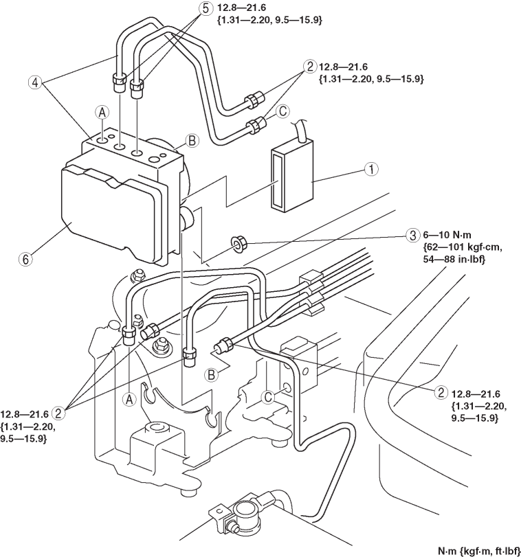 (See Brake Pipe (ABS HU/CM—brake pipe joint) Installation Note.)