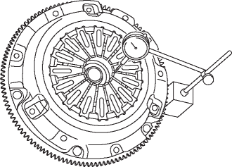 3. When checking the diaphragm spring fingers, mount a dial indicator on the cylinder block.