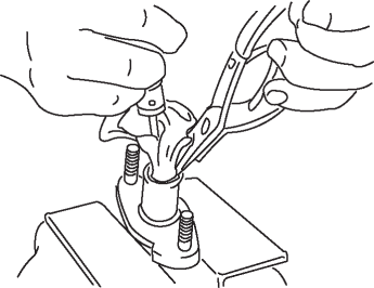 1. While pressing the piston in with a cloth-wrapped pin punch to protect the push rod contacting surface, remove/install the snap ring.