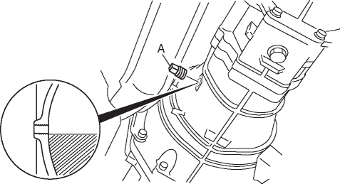 3. Verify that the oil is at the brim of the check plug hole as shown.