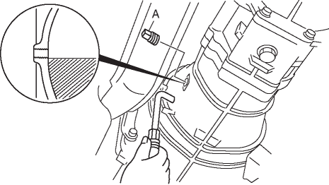 7. Add the specified oil from check plug A port until the level reaches the brim of check plug hole.Specified oil grade