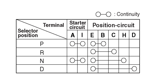 1. Verify that the starter operates only when the ignition switch is turned to the START position with the selector lever in the P or N position.