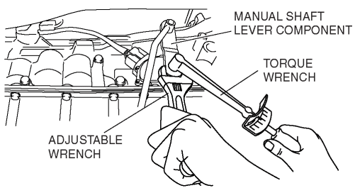 Do not use an impact wrench. Hold the manual shaft lever when tightening the manual shaft nut, otherwise the transmission may be damaged.