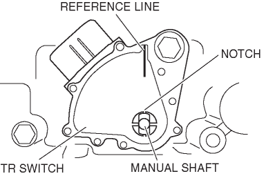 15. Verify the TR switch reference line and the notch of the manual shaft are aligned.