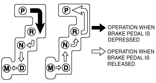 2. With the brake pedal depressed, verify that there is a “click” at each range when shifted.