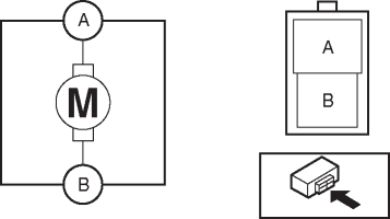 1. Connect battery positive voltage to blower motor terminal A, ground to terminal B, and then verify that the blower motor operates smoothly. If the operation condition is not normal, replace the blower motor.