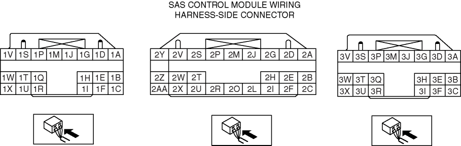 • There is no continuity between the poor connection detector bar terminals of the SAS control module.
