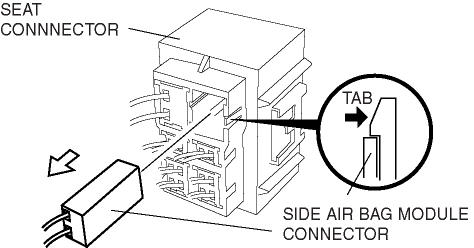 5. Detach the tab as shown in the figure and remove the connector from the seat connector.