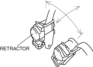 4. While pulling the seat belt out, make sure that the seat belt does not lock when the retractor is tilted slowly up to 15° from the mounted position and locks when the retractor is tilted 40° or more.
