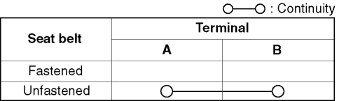 4. Inspect for continuity between the buckle switch terminals using a tester.