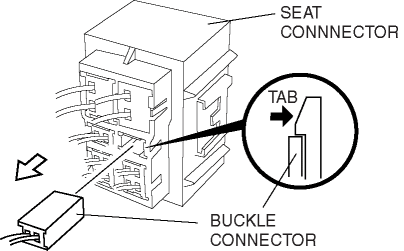 5. Detach the tab as shown in the figure and remove the connector from the seat connector.
