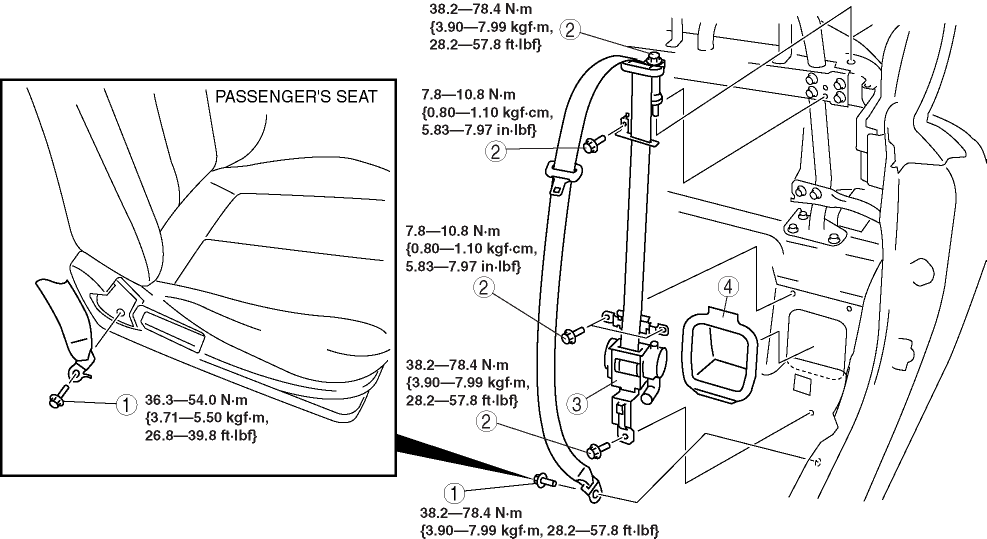 Handling the seat belt (pre-tensioner seat belt) improperly can accidentally deploy the pre-tensioner seat belt, which may seriously injure you. Read the air bag system service warnings and cautions before handling the seat belt. (See AIR BAG SYSTEM SERVICE WARNINGS.) (See AIR BAG SYSTEM SERVICE CAUTIONS.)