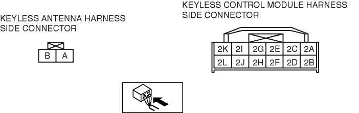 • keyless control module: 2H—keyless antenna: B