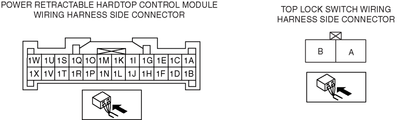 INSPECT THE WIRING HARNESS BETWEEN POWER RETRACTABLE HARDTOP CONTROL MODULE AND TOP LOCK SWITCH